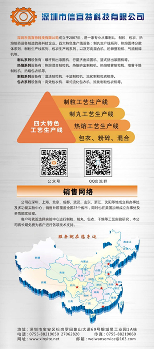非常感謝您對深圳信宜特科技有限公司一直以來的大力支持,我公司將參加PHEXTOUR藥物制 劑技術巡回研討會宜昌站,屆時將由我們公司技術人員分享制藥設備原理對工藝的影響,探討在固體 制劑研發(fā)和生產中一些常見問題出現(xiàn)的真正原因以及相應的應對策略。同時,在此次研討會上,也會 有知名藥用輔料和功能食品配料廠家(亞什蘭、kenry、 廣生膠囊、贏創(chuàng)、羅蓋特等)與大家交流新型 輔料在藥物制劑及營養(yǎng)健康品中的應用。